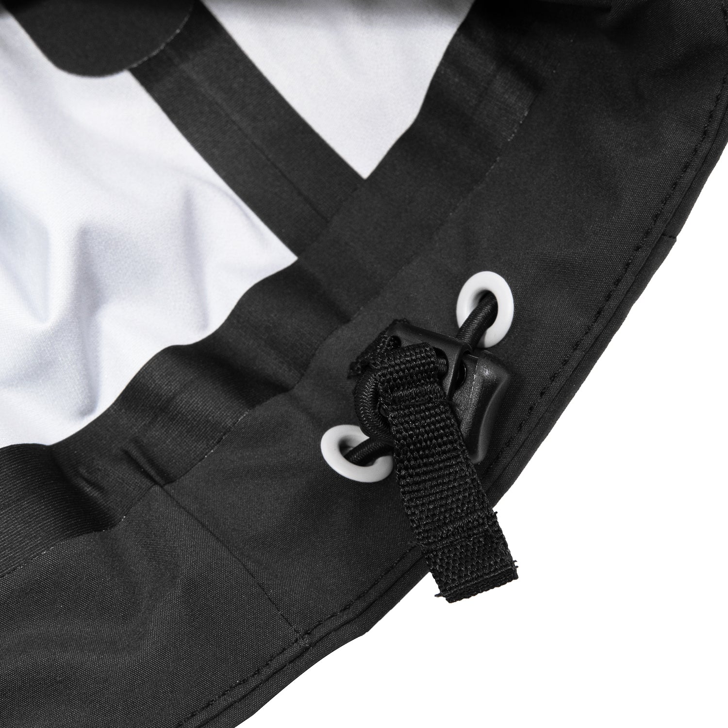 •Helmet compatible articulated hood with rear adjust
