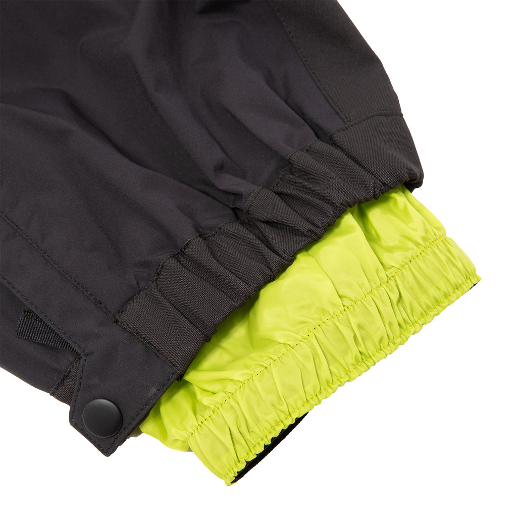 •Zip gusset leg openings w/dual snap adjust